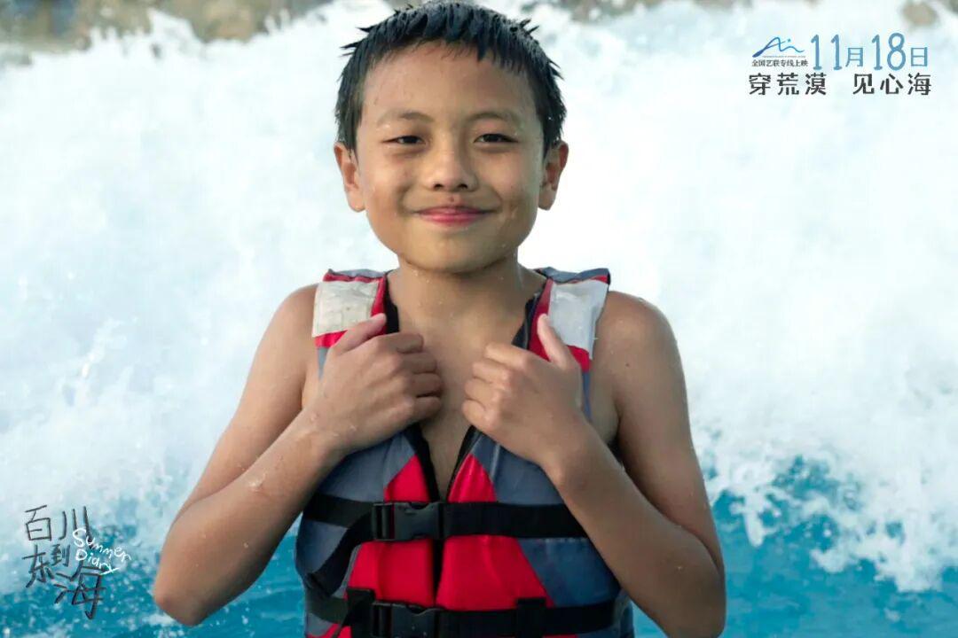 影片刻意避开西部片的刻板呈现,用沙漠的黄与幻想中大海的蓝交织出视觉奇观。民勤小曲与电声音乐的碰撞、方言台词的朴实质感,配合素人演员的自然表演:吴潘芮饰演的小海带着超越年龄的沉静,王浩宇塑造的元元灵动鲜活。导演通过简化剧本、让演员专注当下情感的方式,让角色情感稳稳落地,避免刻意煽情。
