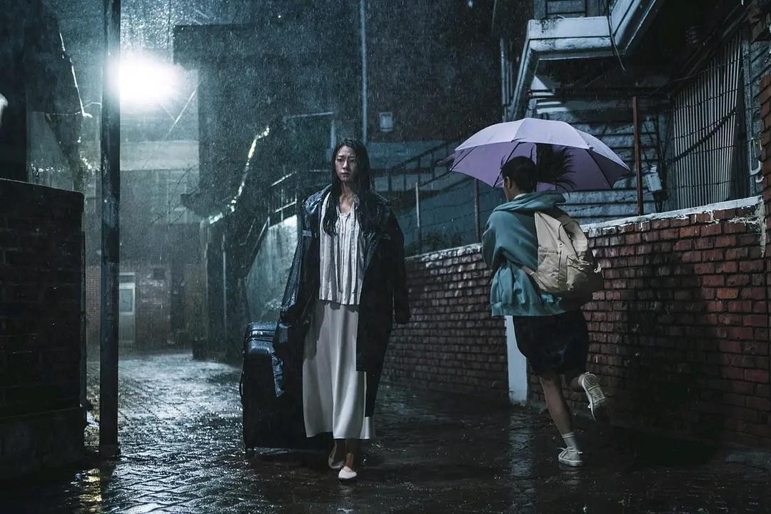 剧集将镜头对准一条被黑暗笼罩的小巷,巷尾那家看似普通的照明商店,实则是连接阳间与阴间的隐秘通道。前4集完全遵循恐怖片逻辑,密集的惊悚桥段让观众神经紧绷:雨夜场景中,潮湿空气与模糊视线为恐怖元素铺垫完美氛围;白衣女人头发遮脸、红鞋女人身形拉长、男孩脚踝扭曲唱歌等视觉符号,精准击中恐惧点。尤其是镜头特写白衣女人指尖尖钉或镜中黑影时,无需夸张音效便能让人脊背发凉。
