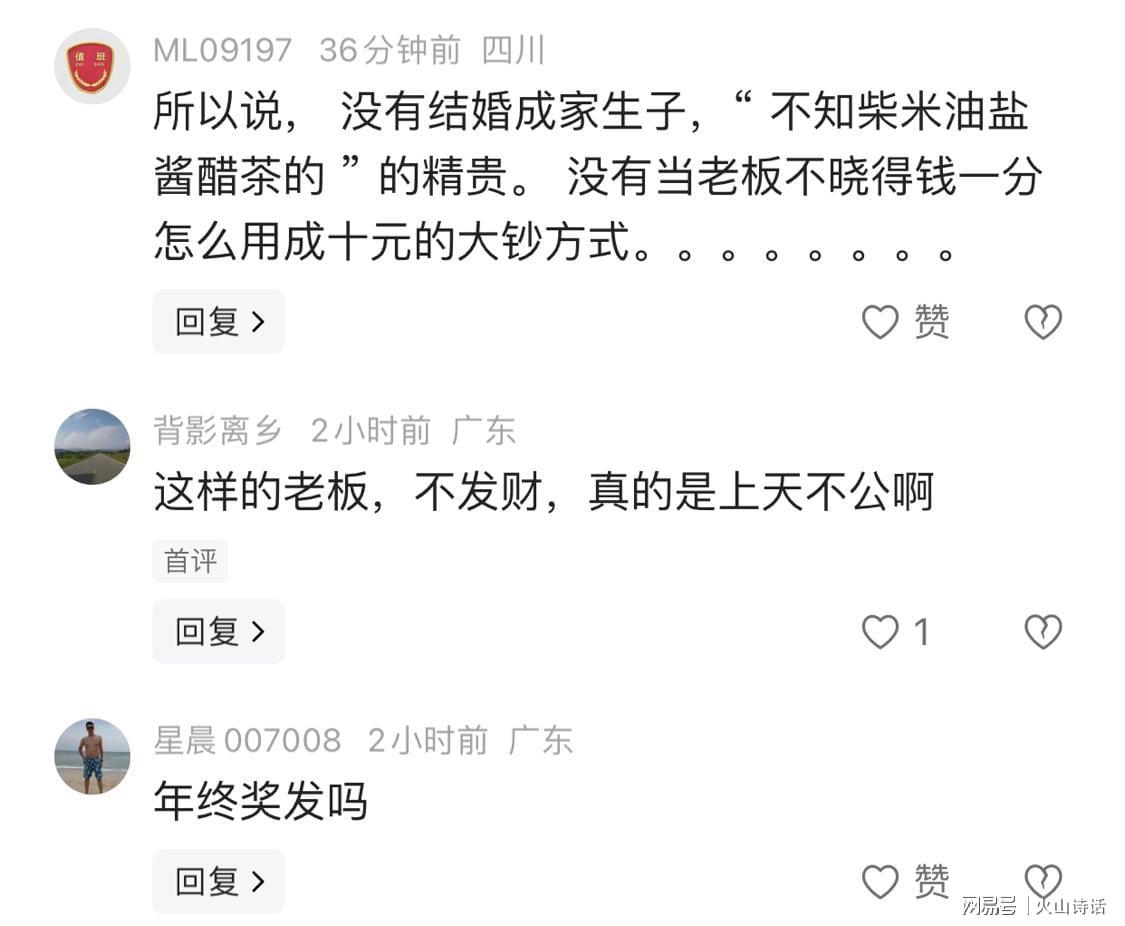 针对此事,有网友感慨:“这样的老板,不发财真的是上天不公!”也有网友表示:“没有结婚成家生子,不知柴米油盐的精贵;没有当老板,不晓得钱一分怎么用成十元的大钞方式。”
