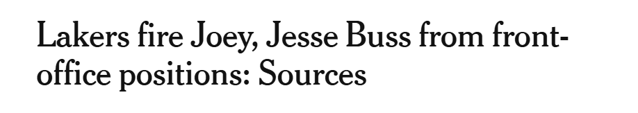 被解雇的乔伊·巴斯与杰西·巴斯通过联合声明表示:“过去20个赛季,我们以湖人人的身份深感荣幸。感谢‘湖人国度’始终如一的接纳与支持,原本我们期待能以更体面的方式告别,此刻最想问父亲会如何看待这一切。”据公开资料显示,两人父亲杰里·巴斯博士于2013年去世,其生前构建的家族管理体系在此次变动中彻底瓦解。