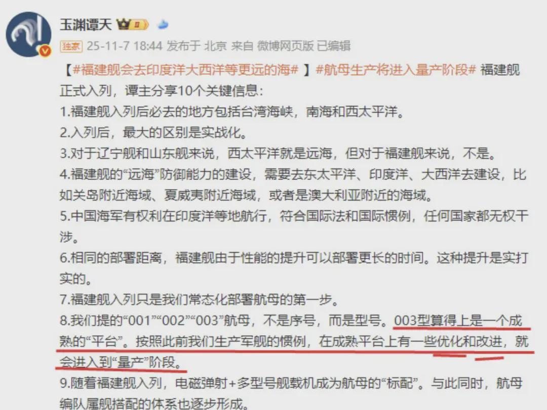 央视近日公开宣布,中国下一艘航母将采用核动力系统,这一消息引发了广泛关注。与此同时,央视对航母代号的阐释也澄清了一个关键认知:001、002、003并非简单的序列编号,而是代表不同型号的技术平台。其中,003型作为技术成熟、体系完备的平台,将不止有福建舰这一艘航母,后续也将批量建造,标志着中国航母建设进入新阶段。