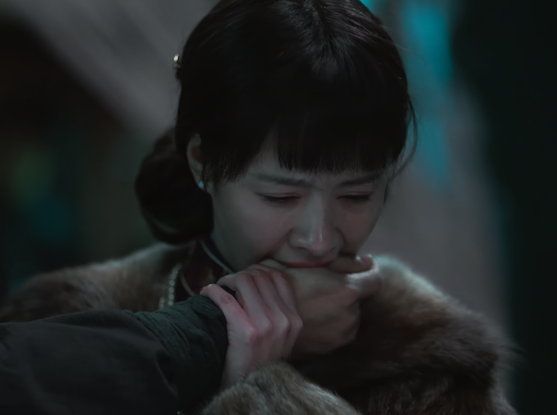 秋荷笑起来时皮肤紧绷,苹果肌凸出在侧脸撑起诡异弧度,嘴角纹路层层叠叠尽显老态。表情幅度稍大时,脸部僵硬感更明显:在咬住恋人手的桥段中,她浮夸的表情配上深得能夹死蚊子的法令纹,堪称“表情管理灾难现场”。当滤镜消失后,浓重妆感下的粗糙皮肤和纹路暴露无遗,与谍战剧应有的真实质感格格不入。