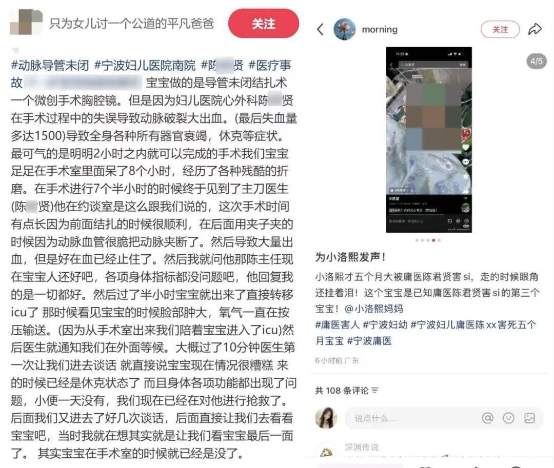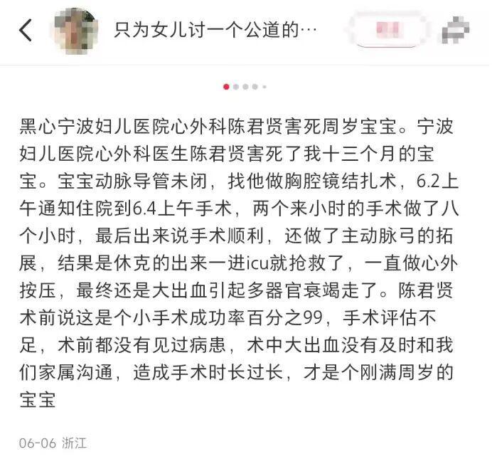 2025年6月,1岁患儿动脉导管未闭手术中死亡,家属控诉陈某君“术中大出血未沟通”。