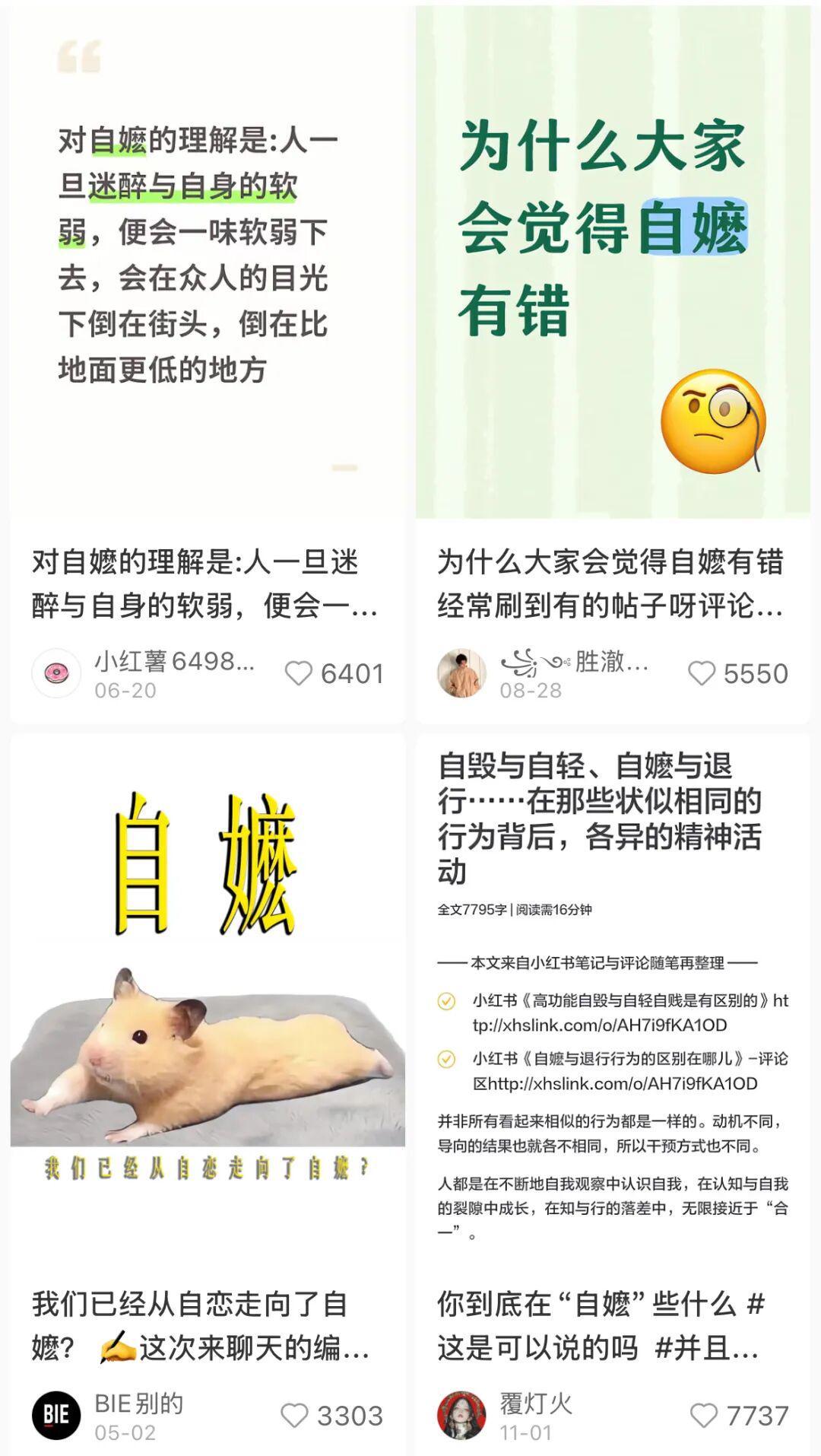 你或许也发现了,“自嬷”在广义上和“自怜”“自恋”区别不大,但能传播这么广,正说明它本质上不是一个严谨的定义词,而是一个能勾起社会情绪的现象提炼词。如“普信”一样,它精准提炼了一个“懂得都懂”的现象:一群人忙着“自我幼化”,另一群人忙着“批判幼化”。