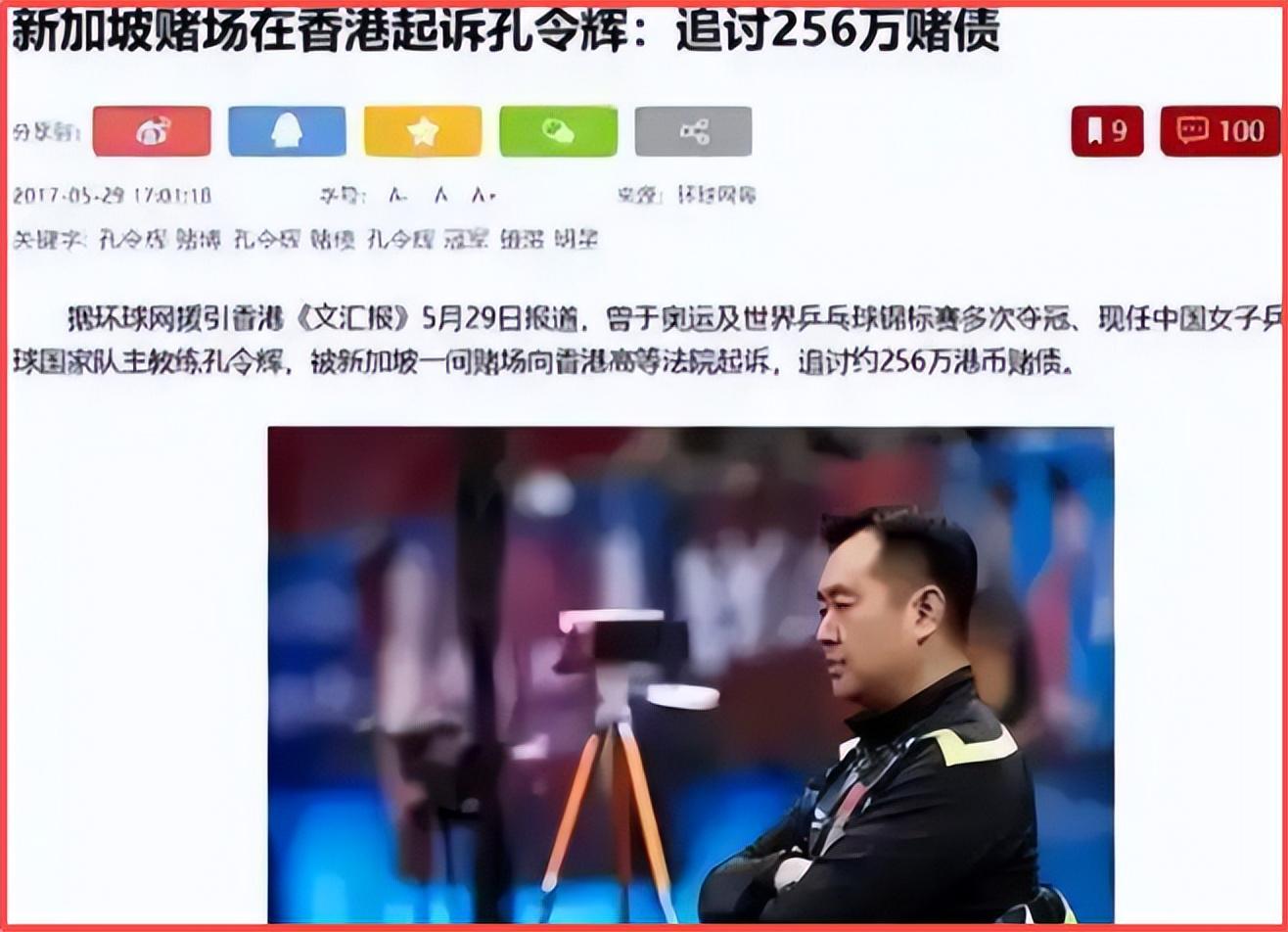 2017年5月,新加坡滨海湾金沙赌场将孔令辉告上香港高等法院,追讨45.4万新加坡元欠款及利息。