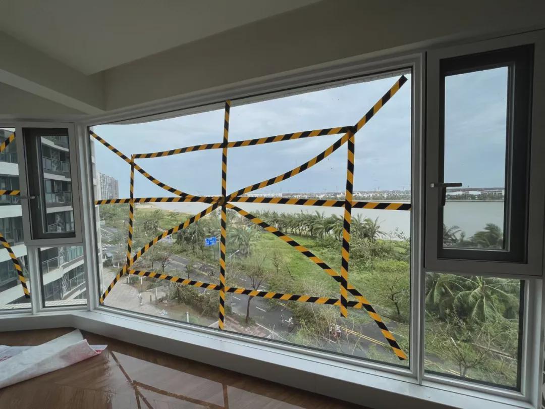 首先,关好门窗并用胶带贴上米字。这样既能减少内外风压差,又能增强玻璃韧性,降低玻璃爆裂的风险。