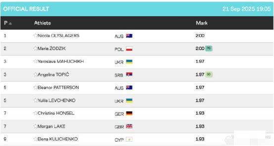 第二名虽然也是2米,但因为她是三次过,所以拿下了银牌。