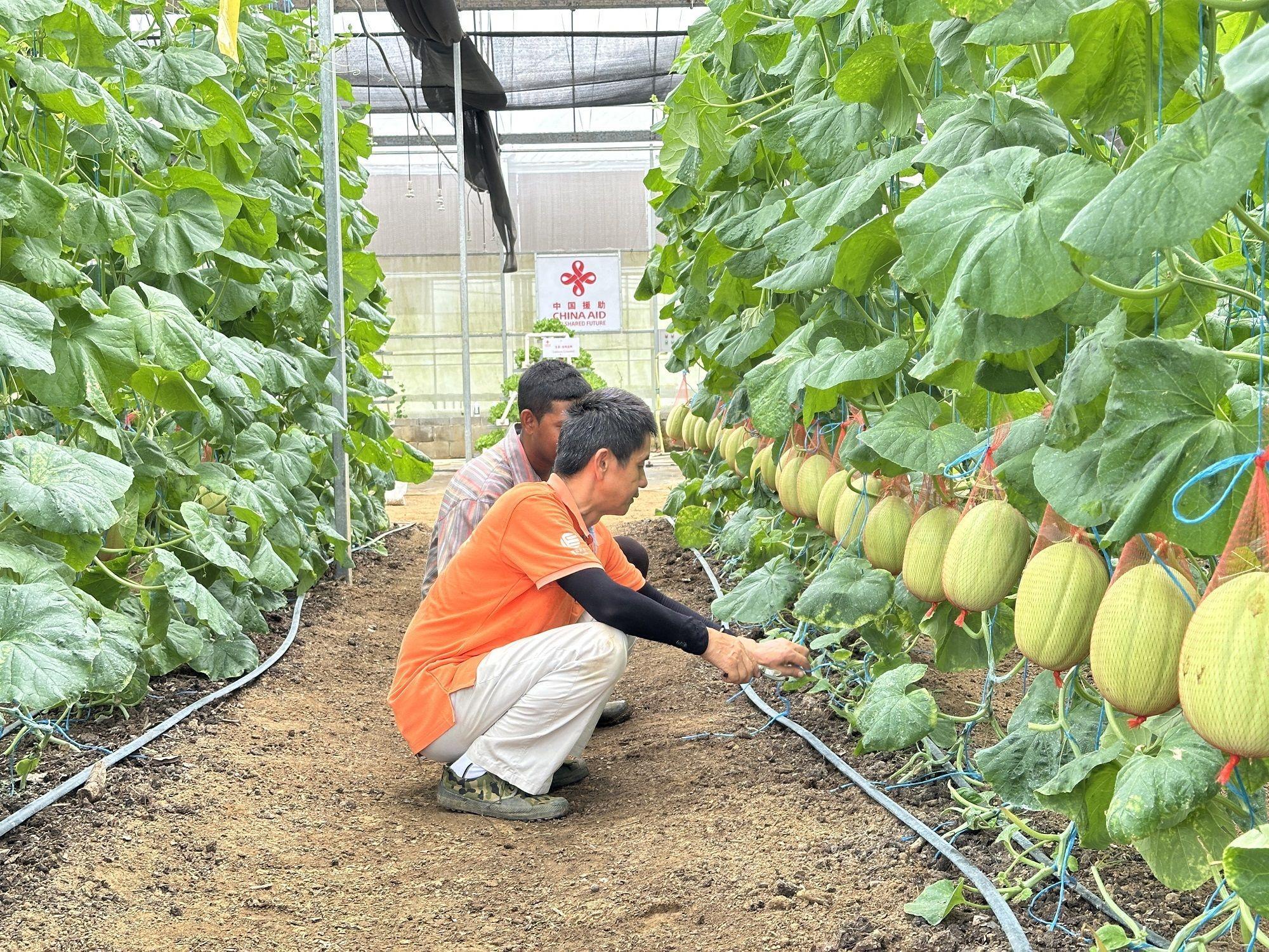 王艳华:“我们带了国内优质的品种到这边进行筛选,比如中国的西红柿、豆角、黄瓜和丝瓜等,在这里长势都非常好,产量和品质都有了显著提升。”
