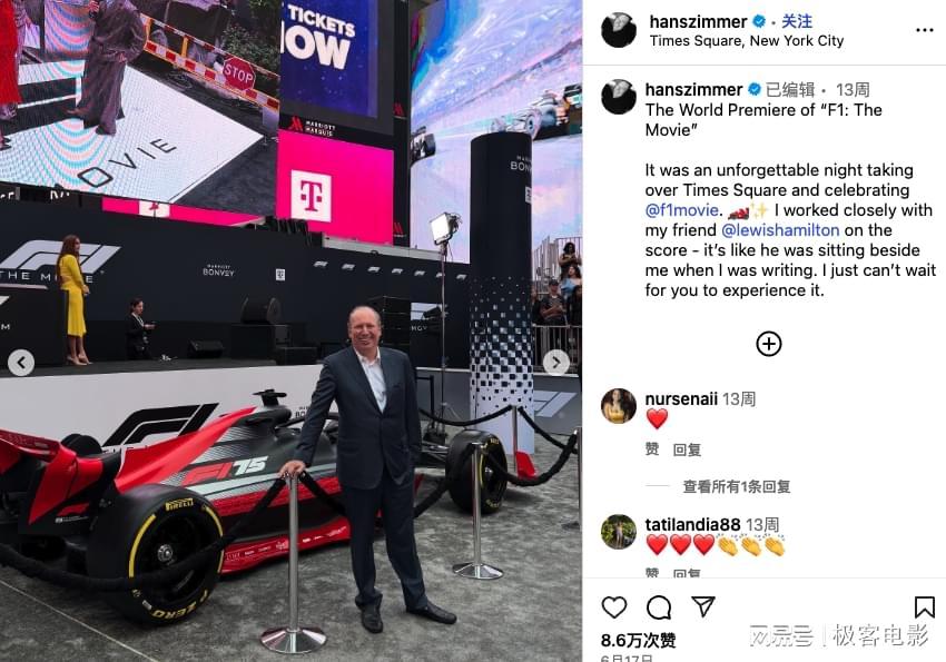 △ 汉斯·季默参加电影《F1:狂飙飞车》首映礼