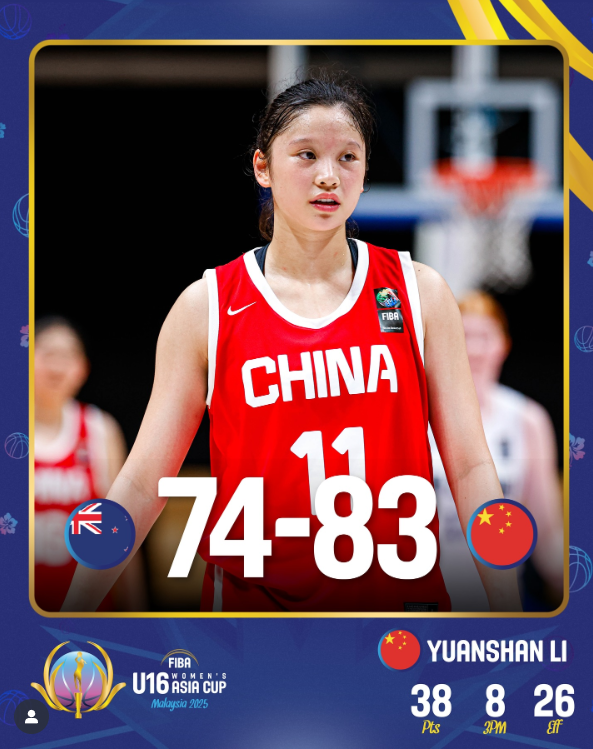 在近日举行的中国U16女篮亚洲杯首场比赛中,中国队有惊无险地战胜了新西兰女篮,收获了开门红。比赛中,一度领先对手16分的中国队在末节出现崩盘,分差被缩小至5分,但凭借着稳健的罚球和出色的失误控制,最终还是拿下了比赛。而这场比赛,16岁的锋卫摇摆人(SF)李沅珊成为了全场最耀眼的明星,她的出色表现甚至火到了国外,被不少人赞誉为“女库里”。