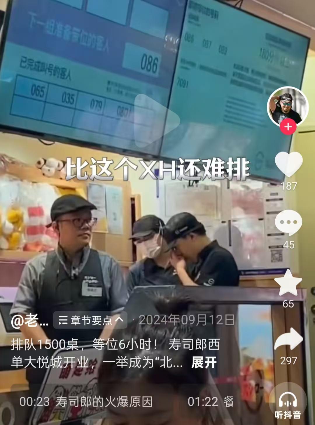 在9月12日一位博主发布的视频中可以看到,“寿司郎”店外排队1500人以上,最低要等到六个小时。