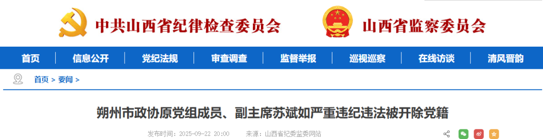 与此同时,朔州市政协原党组成员、副主席苏斌如的严重违纪违法问题也浮出了水面。经省委批准,省纪委监委同样对其进行了立案审查调查。