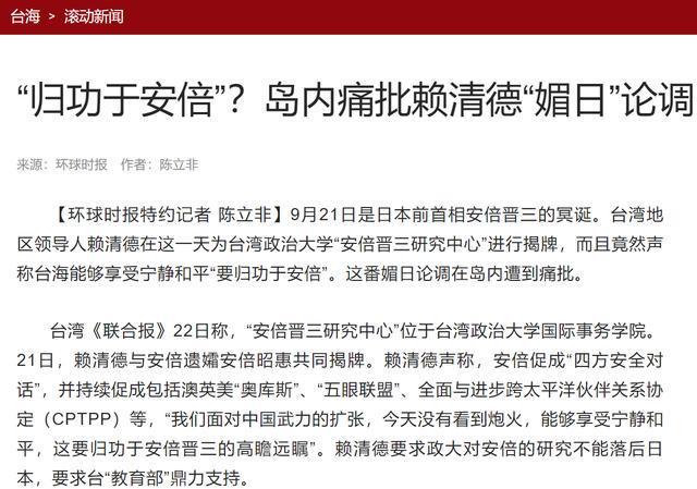 要知道,这个安倍研究所的成立时间非常敏感,就在“九一八”纪念日几天后。而台湾地区作为曾经遭受过日寇蹂躏殖民过的地方,赖清德敢说出这样的鬼话、做出这样亵渎祖辈的事情,简直就是民族的败类和耻辱!