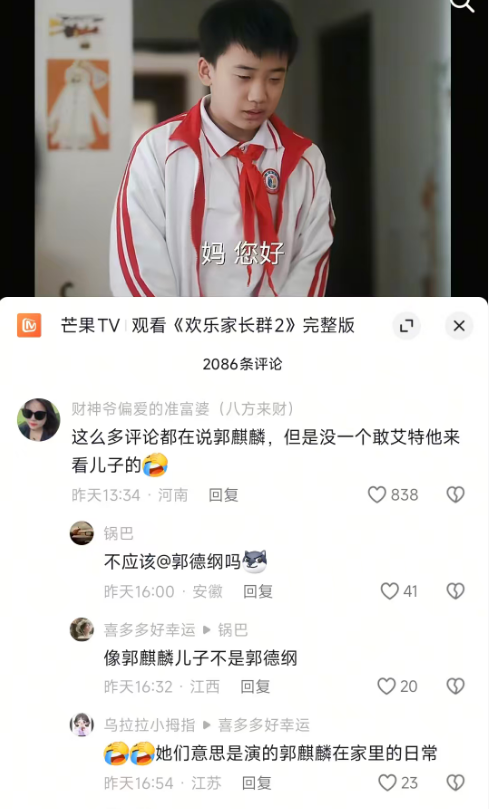 电视剧开播都要做剧情切片宣传,但在《欢乐家长群2》某个切片里,很多网友却齐刷刷打出了“郭麒麟”三个字,已知郭麒麟并未出演《欢乐家长群2》,他的名字之所以出现在这里,还是和剧情有关。