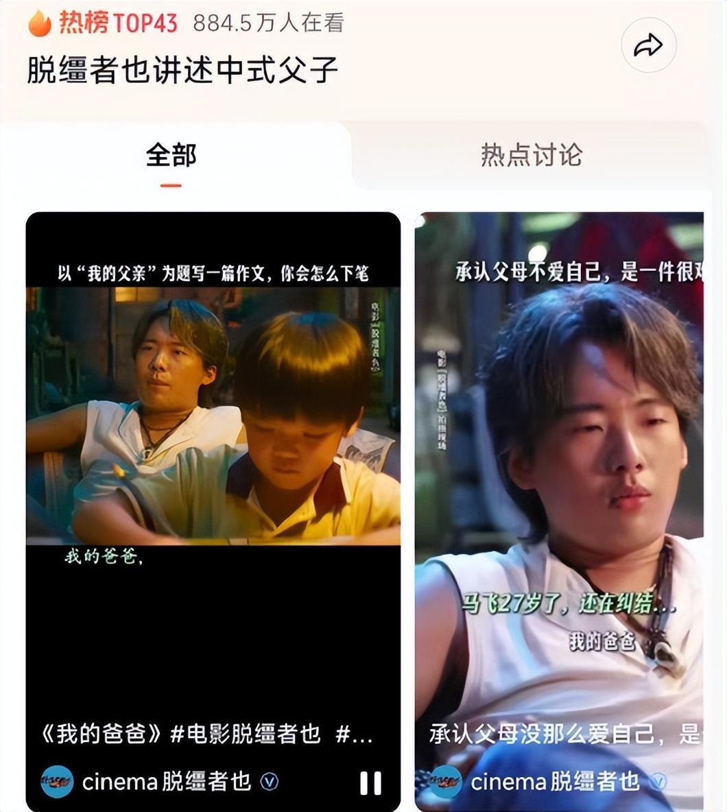 就在《欢乐家长群2》开播前一个月,郭麒麟主演的电影《脱缰者也》上映,该片剪辑了很多有关父子关系的切片进行宣传,郭麒麟自然是重点。