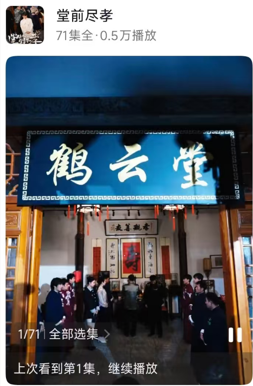 如果说《脱缰者也》只是在切片里炒作了一下郭麒麟的家庭关系,那短剧《堂前尽孝》则干脆就是直接融梗了。