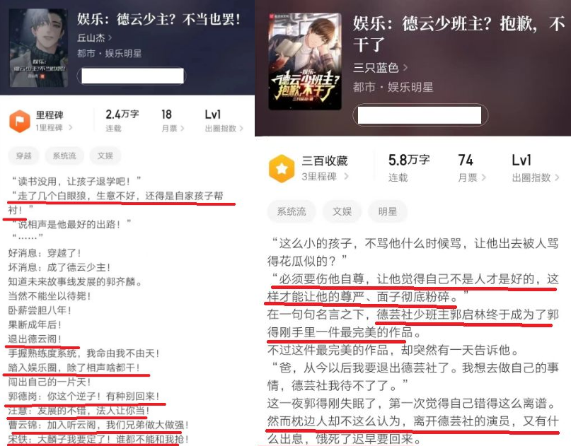 如果把时间线再往前推,你会发现除了影视剧之外,网文界早就搞出过很多类似题材小说,比如《德云少主?不当也罢》和《德云少班主?抱歉,不干了》之类。
