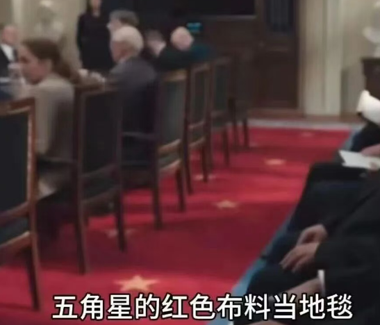 最让人无法容忍的是,剧中竟出现带五角星的红色地毯被肆意踩踏的场景。