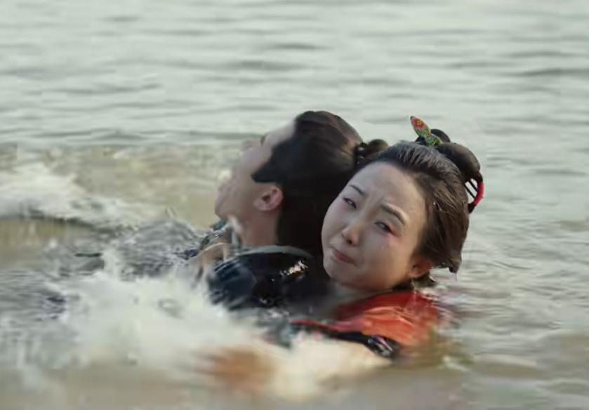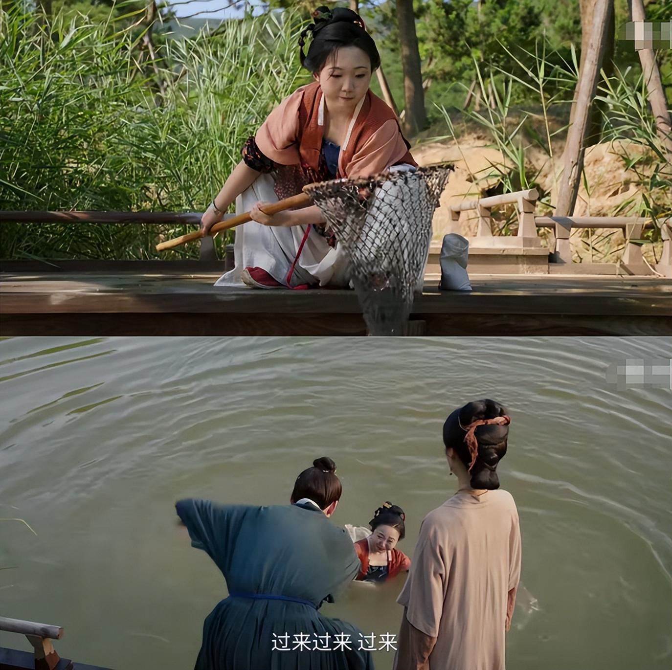 可李嘉琪却偏要给自己多加一些戏,又是去买网兜子去河里捞鱼,最后又把自己摔到湖里,弄了一身狼狈。