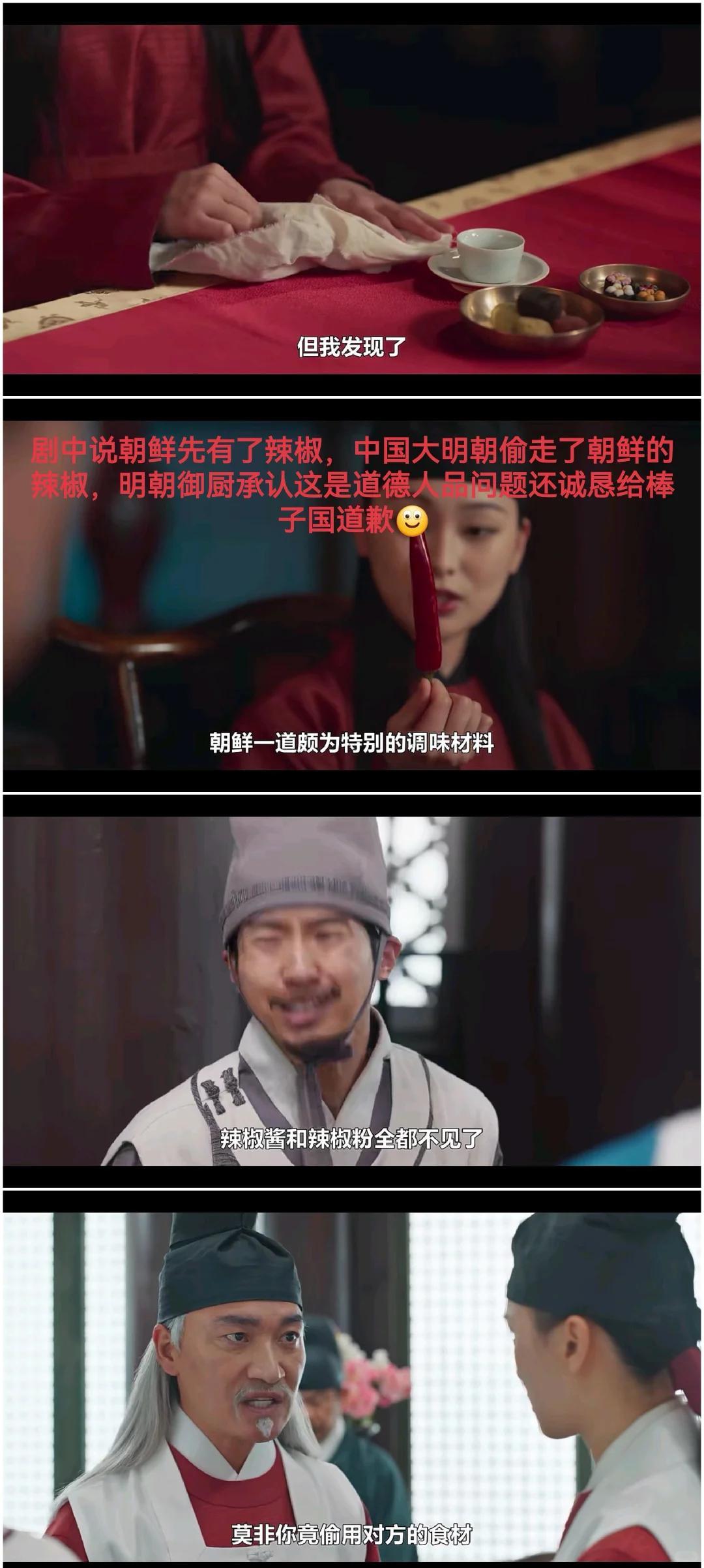 剧中竟然还声称中国的辣椒是明朝厨师从朝鲜偷来的。