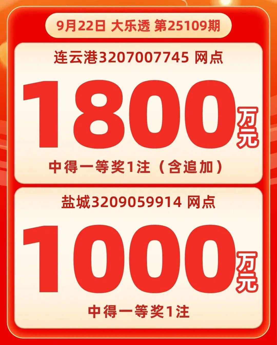 1800万!1000万!江苏体彩大乐透爆出巨额大奖