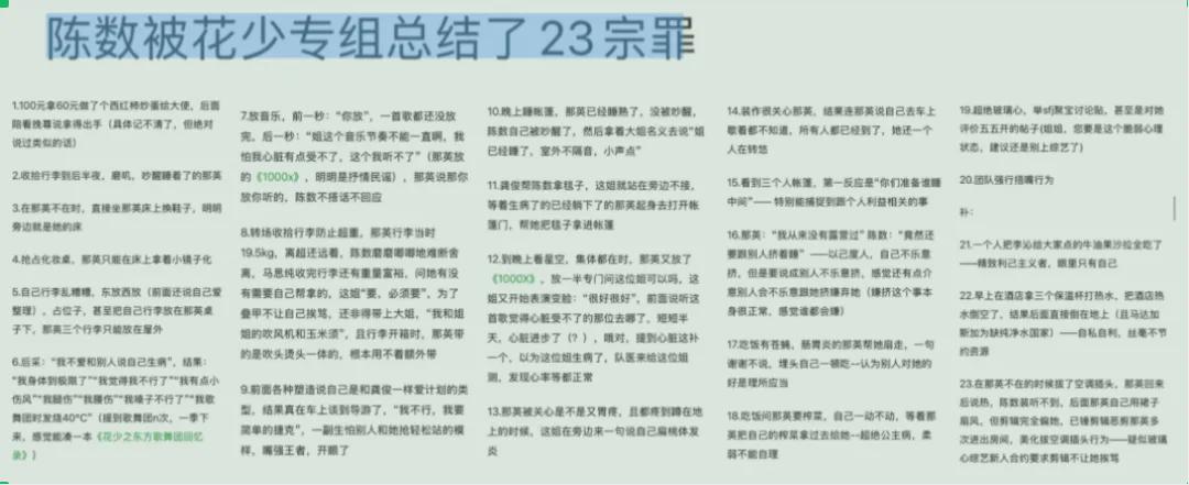 她在《花少》里的表现,被人列出“23 宗罪”。