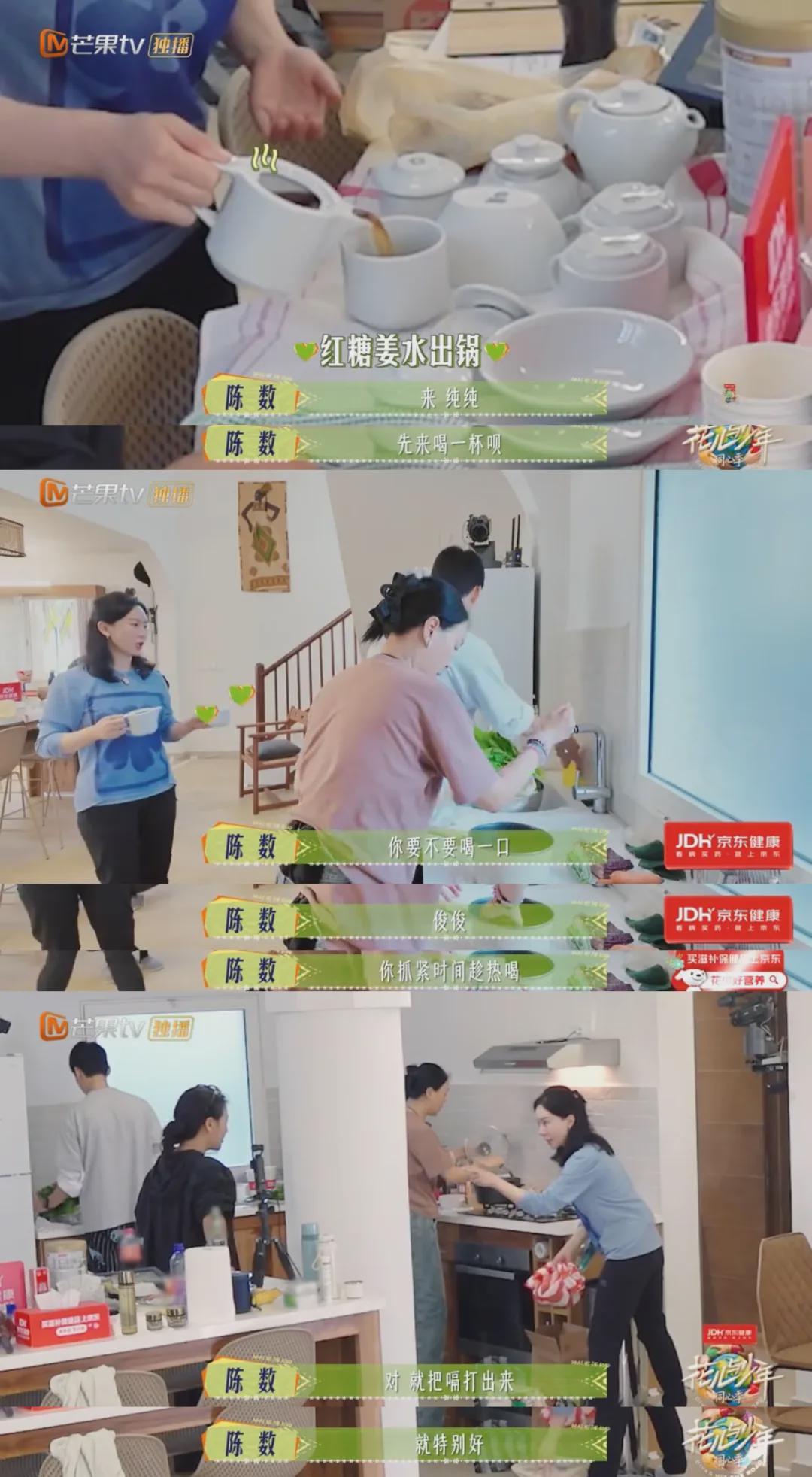 浮潜回来的妹妹们,喝上了她熬的红糖姜茶;
