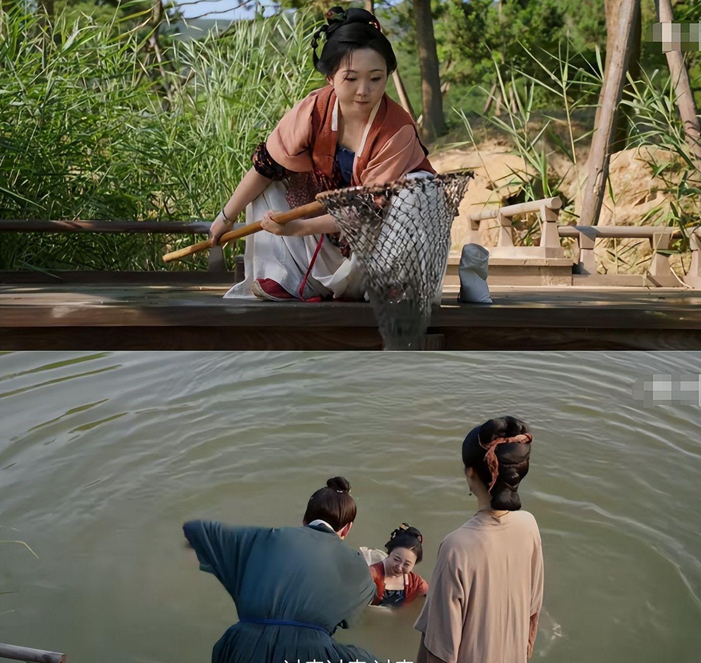 可李嘉琪非要加戏:先去买网兜,再去河里扑腾,最后整个人跌进湖中,狼狈不堪。