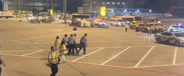 据网友发布的视频显示,一名男子在停机坪上奔跑,身后有多名警务人员追赶。男子不顾警务人员的警告,绕着飞机持续奔跑,最终被4名民警控制并抬走。现场停有警车,两名疑似机场工作人员也在场。有目击者称,男子被裹进约束袋后抬离现场。