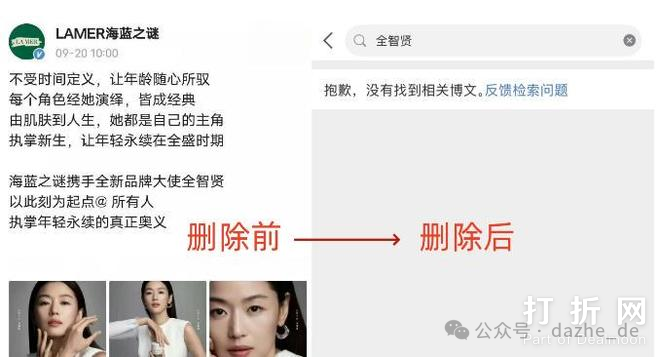目前,海蓝之谜和路易威登(LV)已经删除了所有与她相关的微博博文。