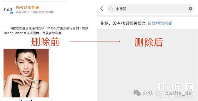 她代言的伯爵(PIAGET)也迅速撤下了广告内容。