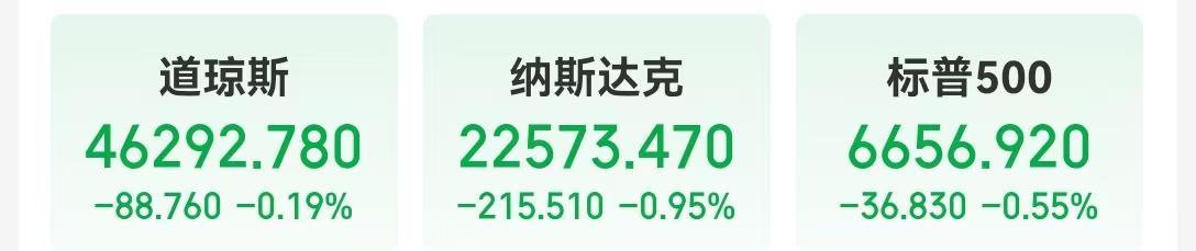 市场方面,美股三大指数集体收跌,道指跌0.19%,纳指跌0.95%,标普500指数跌0.55%。大型科技股普遍下跌,甲骨文跌超4%;亚马逊跌超3%;英伟达跌超2%,市值一夜蒸发1259亿美元(约合人民币8954亿元);特斯拉、微软跌超1%。
