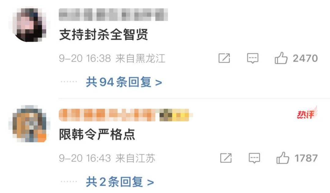 同时,也有影视行业从业者表示,官方限韩令刚有松开的迹象,全智贤的这波风波可能又加剧国家对韩流的限制。