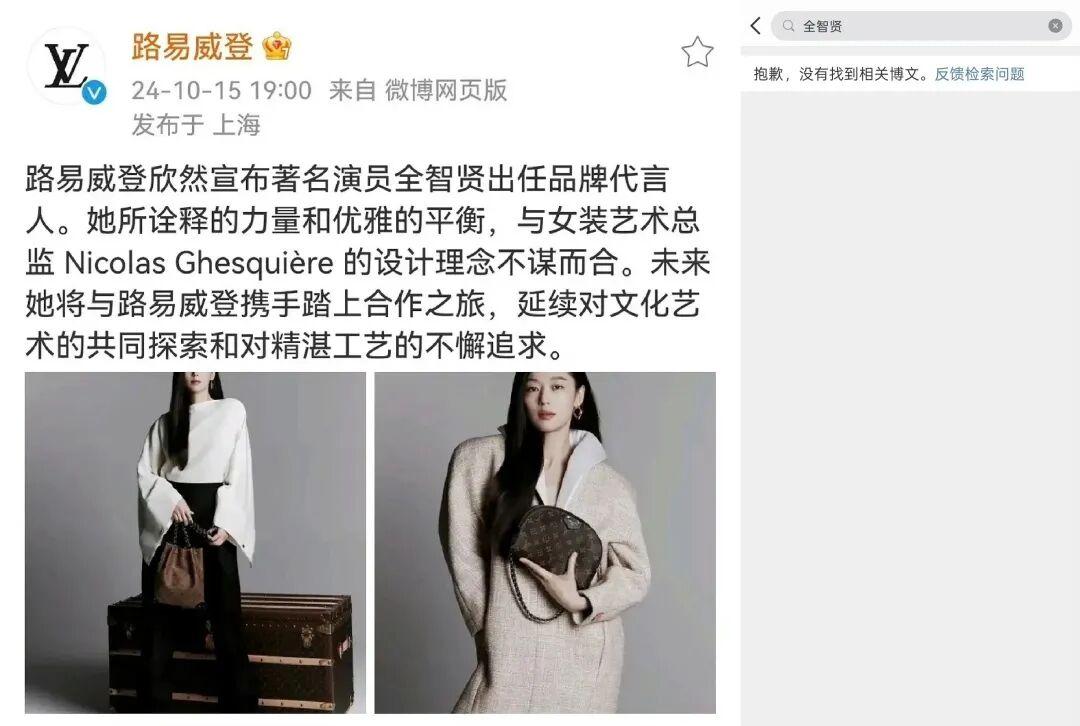 LV虽然磨磨蹭蹭到21日才动手,但官博也删除了全智贤的相关内容,求生欲拉满。
