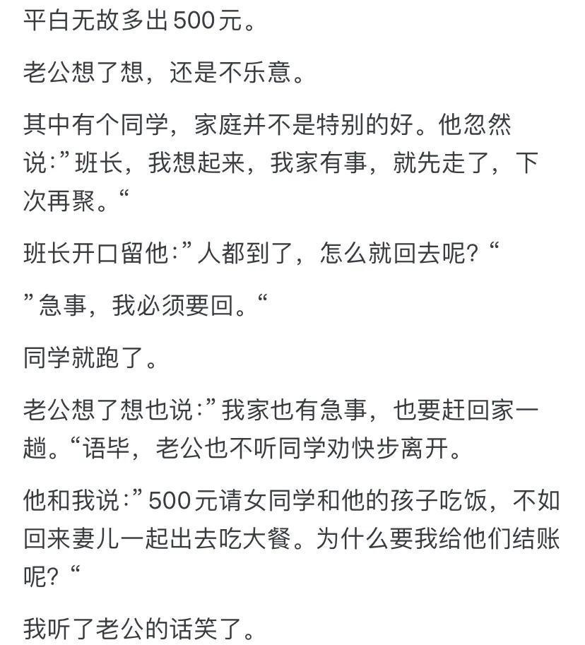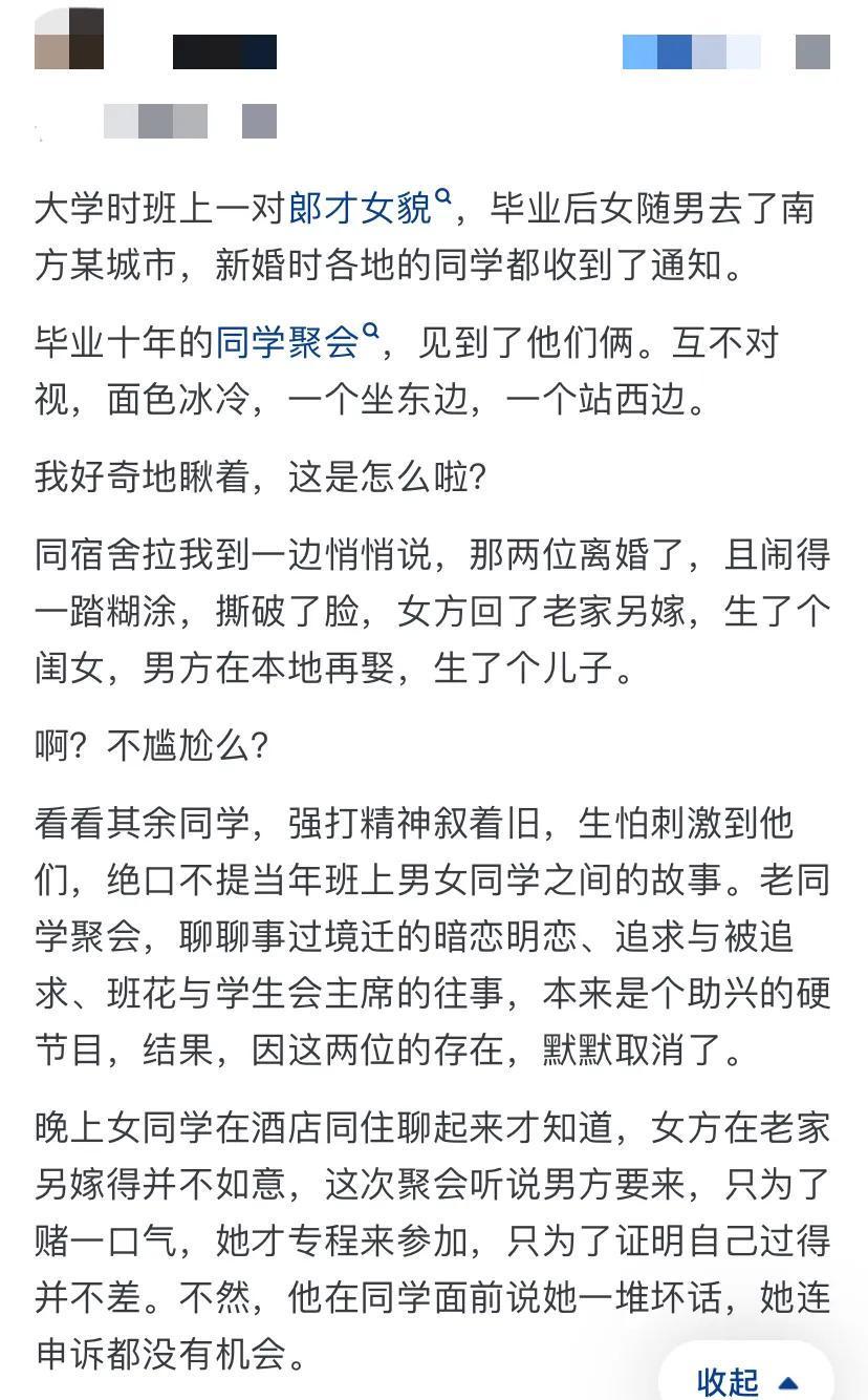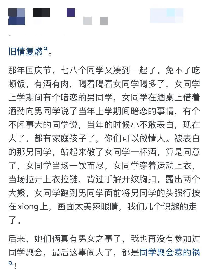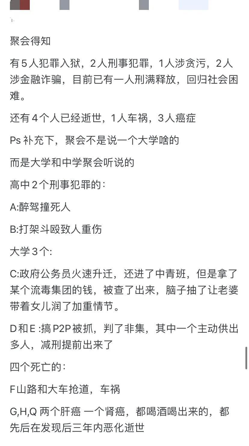 有网友直言不讳:混得特别好的,比如老总、厅级干部等,他们根本不会去参加这种同学聚会。人家更倾向于私底下的小聚。而混得特别差的,比如拿低保的,也不会参加。只有那些高不成低不就,或者稍微有点小钱想展示却没地方展示的人,才会热衷于参加同学聚会。