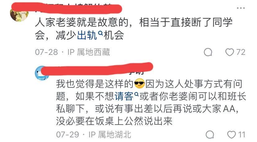 也有网友分享了自己的经历:我们毕业10年还聚了一次,感觉现在应该聚不起来了。比如疫情期间同学群一直在争执,感觉人生观价值观世界观都分歧太大了,无法再聚了。