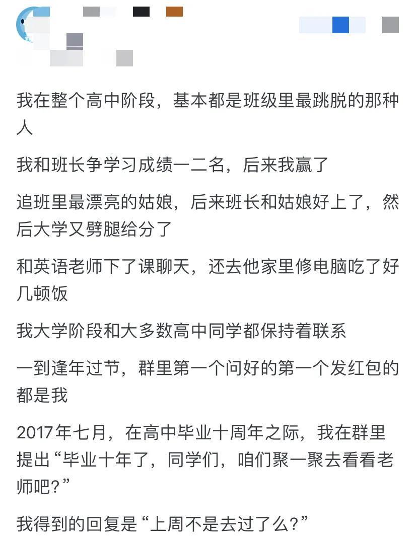 另一位网友表示:无论我混得如何,感觉我都不会去参加大学聚会。因为我不记得很多人了,即使只毕业了一年。不过以前和大多数人也没啥交集,可能是因为疫情期间大学生活有些枯燥吧。