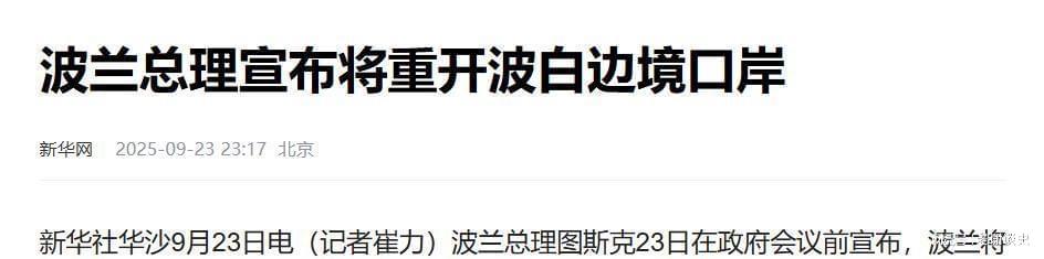 当地时间9月23日,波兰总理图斯克表示,波兰将在9月25日凌晨重新开放与白俄罗斯之间的边境口岸。