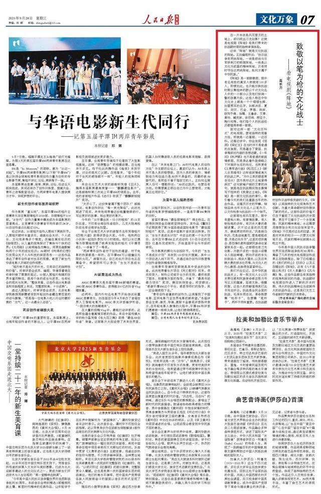 9月24日,《人民日报海外版》第7版刊发专题文章,深度解析电视剧《阵地》如何以文化视角重现抗战历史,致敬以笔为枪的文化战士。