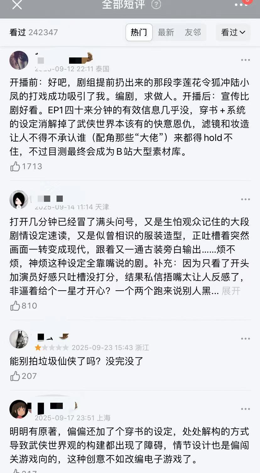 从剧本改编层面看,武侠元素与游戏化叙事的混搭引发水土不服。频繁的时空穿越和关卡式剧情推进,削弱了传统武侠的厚重感。这种创新尝试虽具新意,却导致核心受众的流失,目前豆瓣评分系统尚未开放即反映出市场信心不足。