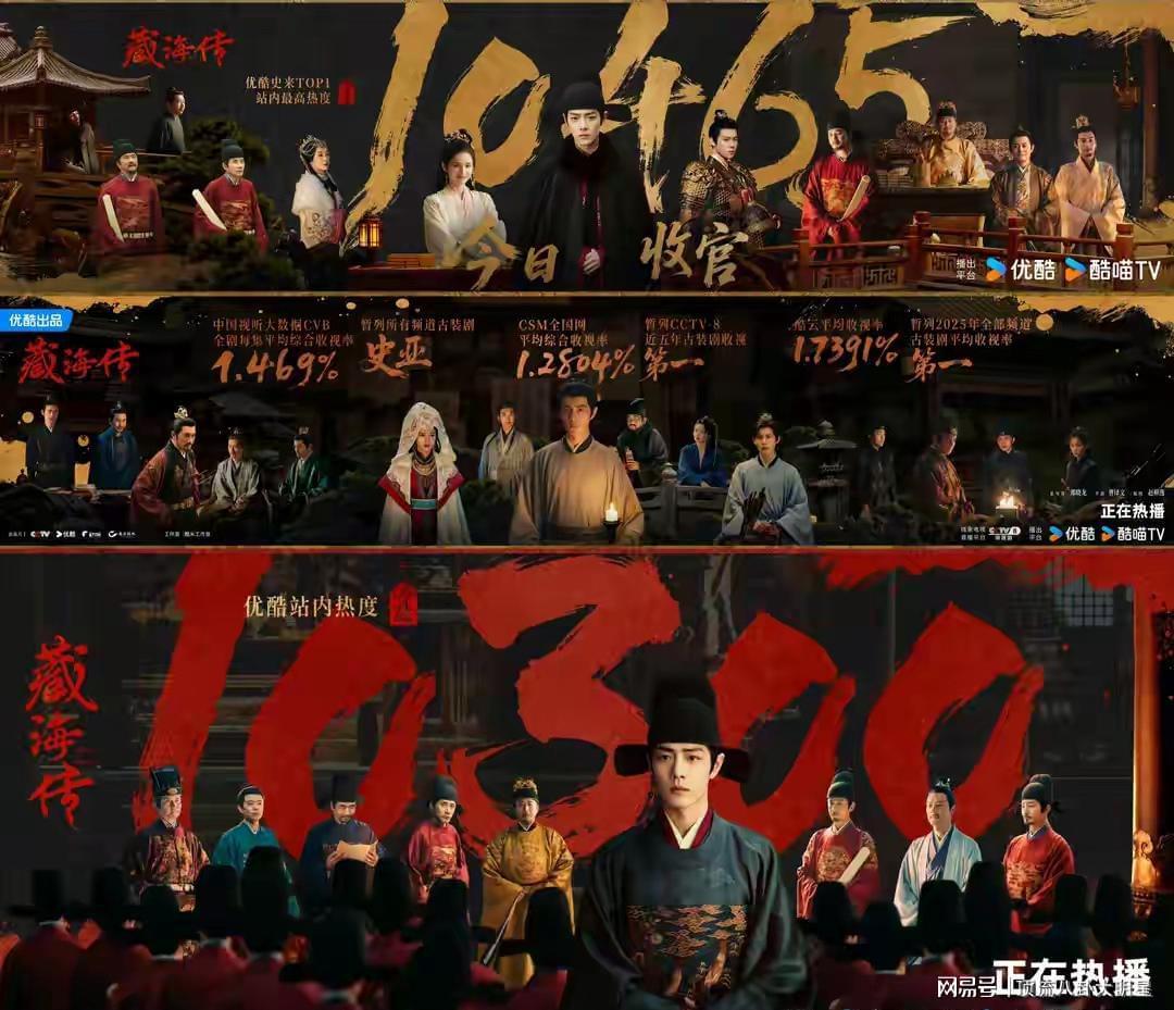 收视率断层领先:在央视八套近五年古装剧收视第一(CVB 1.469%),酷云平均收视率1.7391%,城网单日市占率峰值达40.1%。累计正片播放量破29亿(灯塔数据),云合集均播放量达7250万,单日峰值1.18亿创年度天花板,豆瓣评分7.1分。