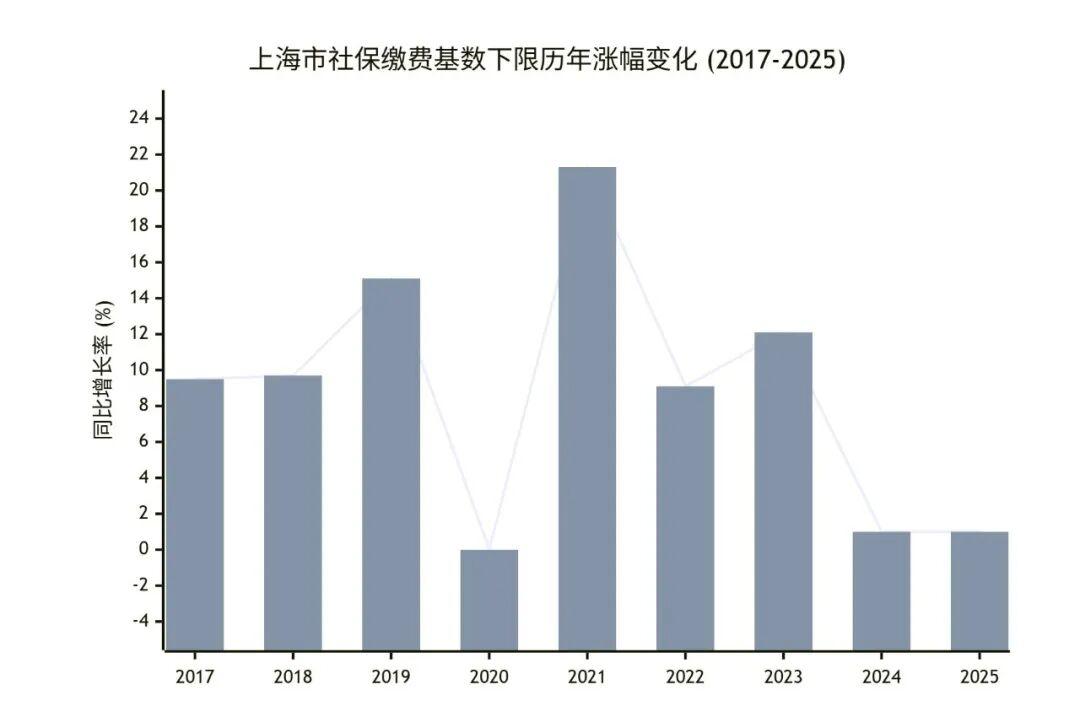 先说上海,在2023年增长12.1%的基础上,去年和今年都仅增长了1%,最低基数更是只增了76元,几乎可以说是“意思意思”。