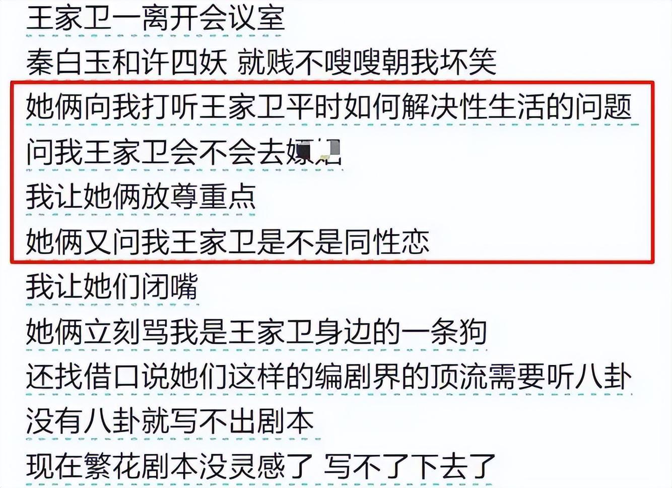 古二爆料说导演聊完剧本走了之后,秦雯竟然会和他八卦王家卫的私生活。