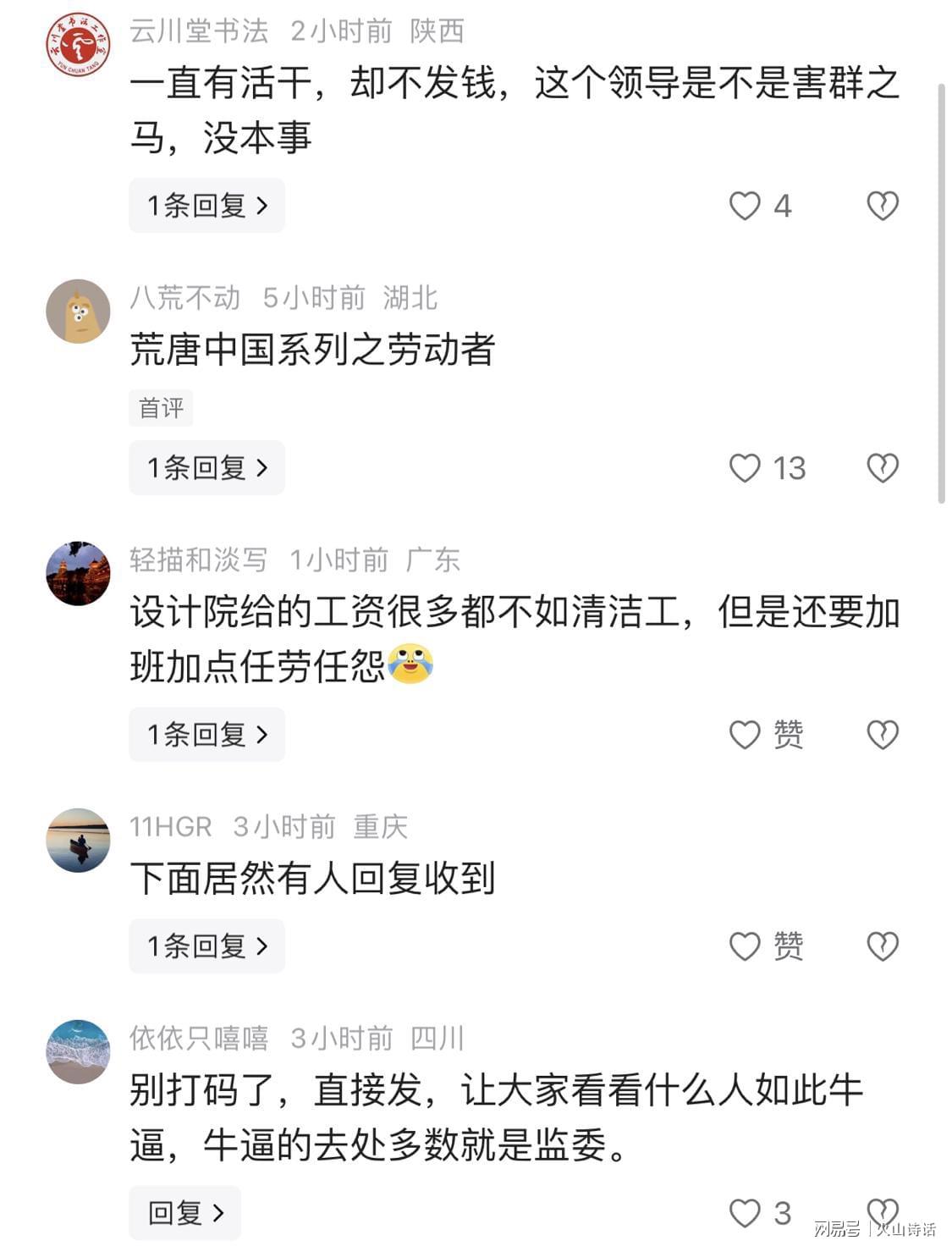 然而,这一言论也引发了网友们的不同看法。有网友质疑道:“一直有活干,却不发钱,这个领导是不是才是真正的‘害群之马’,没本事?”还有网友表示:“设计院给的工资很多都不如清洁工,但是还要加班加点任劳任怨,这样的待遇合理吗?”