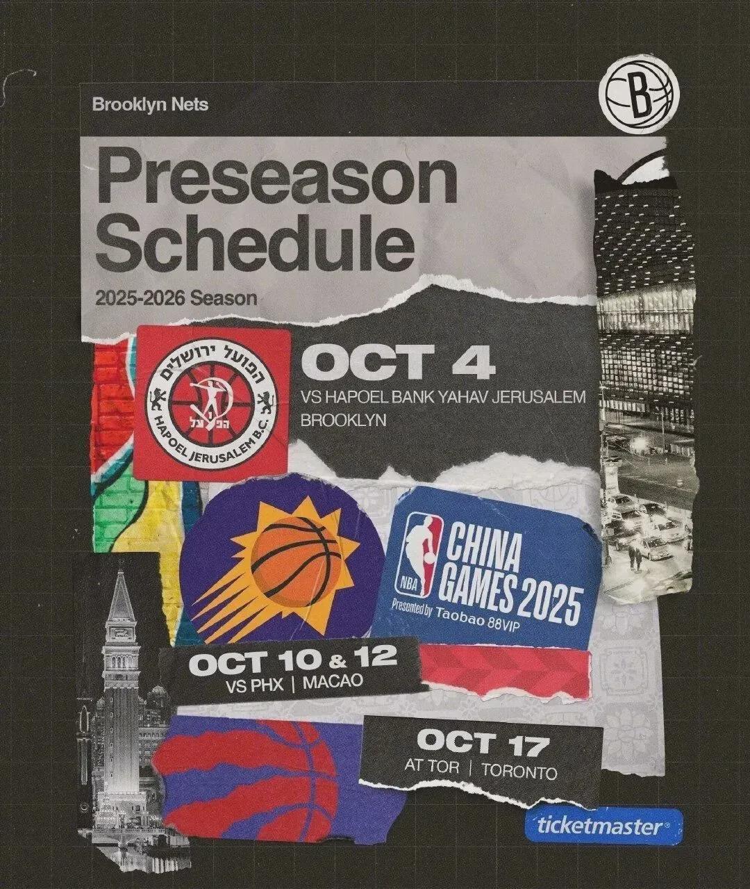 篮网队今年的季前赛安排也已出炉,具体如下: