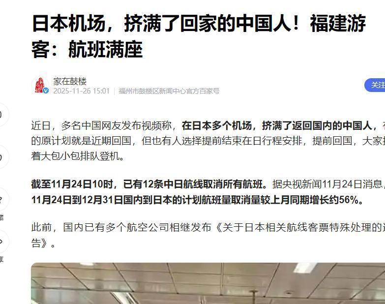 信息来源:日本机场,挤满了回家的中国人!福建游客:航班满座