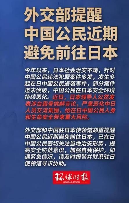 中国政府很快做出回应。11月14日,外交部提醒中国公民近期别去日本。