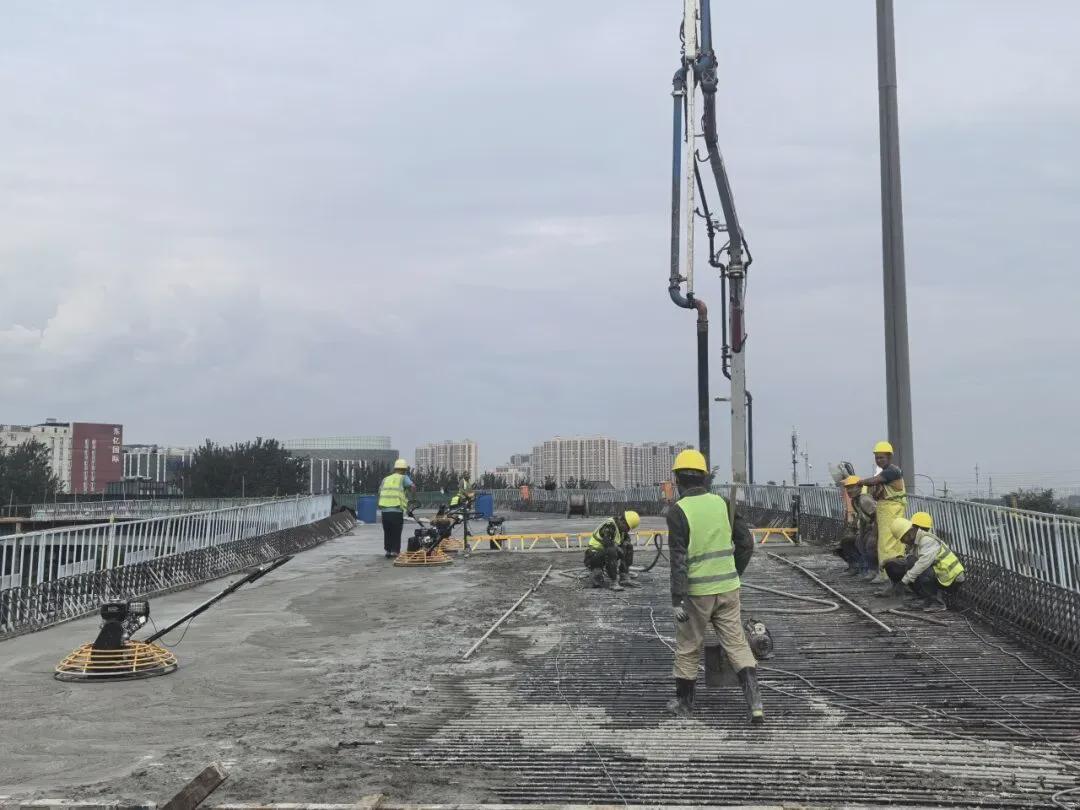 目前项目正在进行上跨五环钢梁桥边板的混凝土浇筑施工,后续还将进行桥梁附属工程施工,包括桥面铺装、沥青摊铺、声屏障安装和交通标志安装。所有工程预计在今年年底前完工。