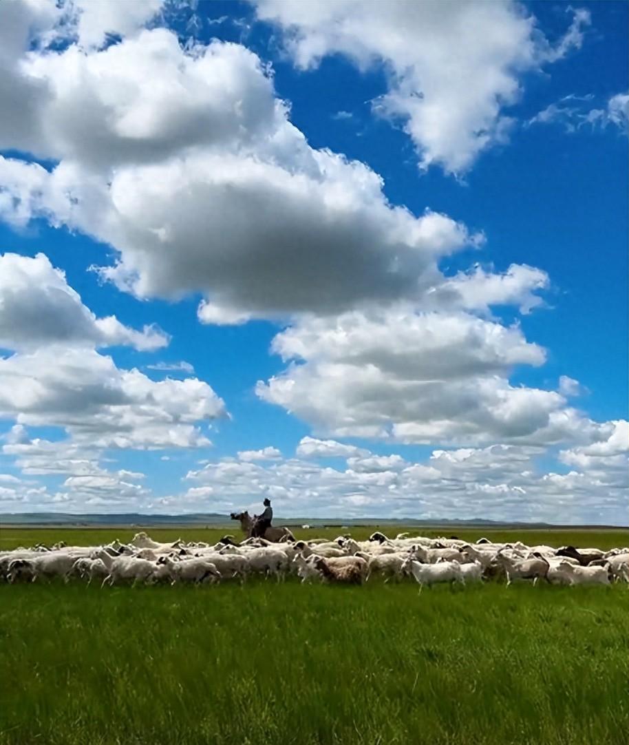 在许多网友的手机相册中,都珍藏着锡林郭勒草原的绝美画面:蓝天白云下,一望无际的绿草如茵,蒙古包旁,一位汉子正弯腰为牛羊添草,回头间,那爽朗的笑容令人难忘。