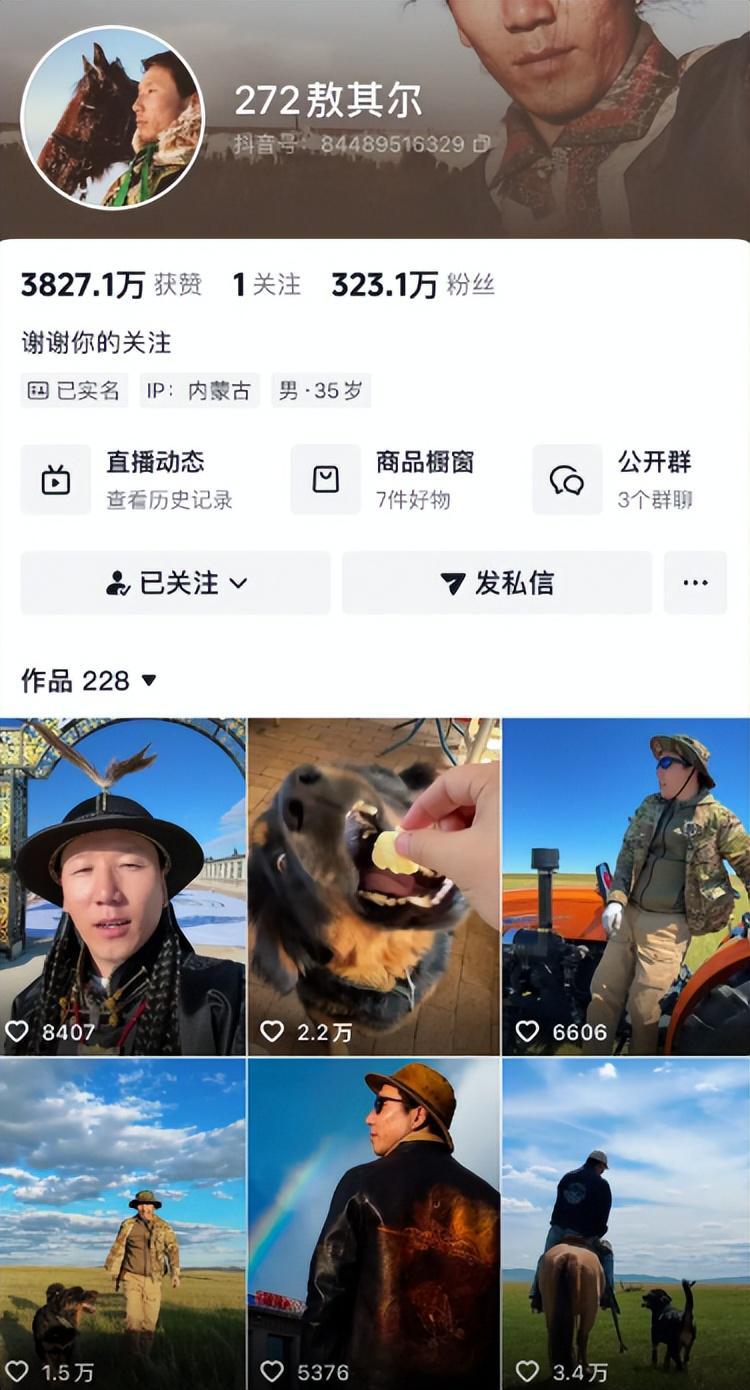截至目前,他的社交账号已积累了300多万粉丝,获赞超过3000万,被网友誉为“最懂草原的网红”。